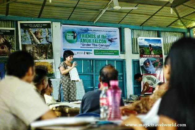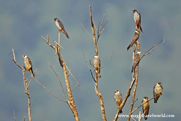 done at night over the sea – unusual and unique traits for a bird of its size.In October 2012, a team of conservation NGOs and wildlife photographers unearthed and documented (see Conservation India) the shocking massacre of tens of thousands of migratory Amur Falcons in the remote state of Nagaland in India’s northeast. Post reporting of this incident, and the subsequent national and international outcry, a lot of conservation projects were initiated in Nagaland. The Government of Nagaland, at every level, was fully committed to end the killings and geared to face the next season. The local community as well as NGOs assisted the government officials on the ground.