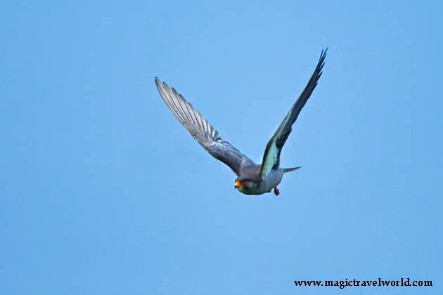 The Amur Falcon (Falco amurensis) has