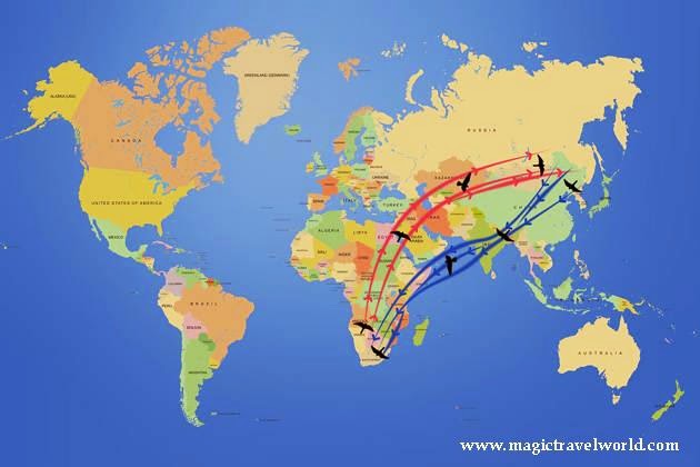 a year from eastern Asia to southern Africa and back. Most of this migration is